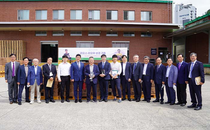 <기증하는 <라오어 성경> 앞 기증 예식 참석자들>