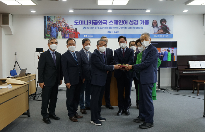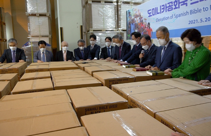 2021년 5월 20일 오전 11시, 대한성서공회 반포센터(경기도 용인시 소재)에서 서현교회(이상화 목사)의 후원으로 도미니카공화국에 <스페인어 성경> 8,391부를 보내는 기증식을 가졌습니다.