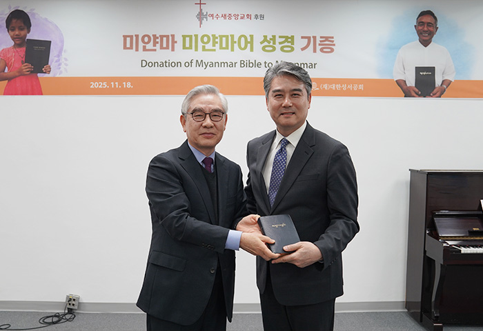 2025년 11월 18일, 본 공회(이사장 이선균 목사)에서는 여수새중앙교회(강정민 목사)의 후원으로 미얀마에 <미얀마어 성경> 3,994부를 보내는 기증 예식을 가졌습니다.