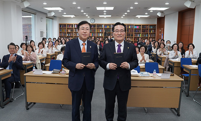 성경 증정(영안교회 양병희 목사, 대한예수교장로회총회(백석) 총회장 김동기 목사)