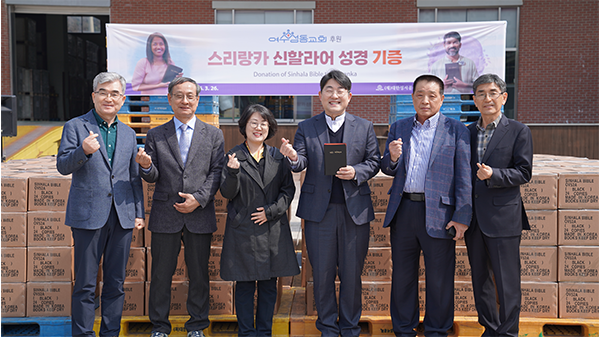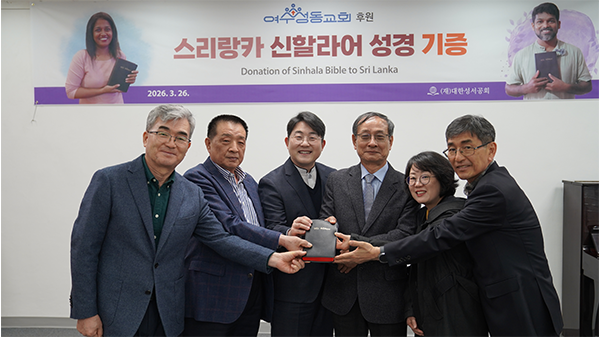 2026년 3월 26일, 본 공회(이사장 이선균 목사)에서는 여수성동교회(김현우 목사)의 후원으로 스리랑카에 <신할라어 성경> 3,600부를 보내는 기증 예식을 가졌습니다. 여수성동교회는 2026년 2월 15일 창립 50주년을 기념하여 이번 성경 후원에 참여했으며, 2021년 부르키나파소, 2022년 우크라이나, 2024년 부르키나파소에 성경을 후원하는 등 지속적으로 해외 성경 보내기 사역에 동참하고 있습니다.