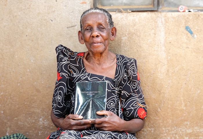 ▲ 우간다 시타 지역에서 성경을 받은 미리암 할머니