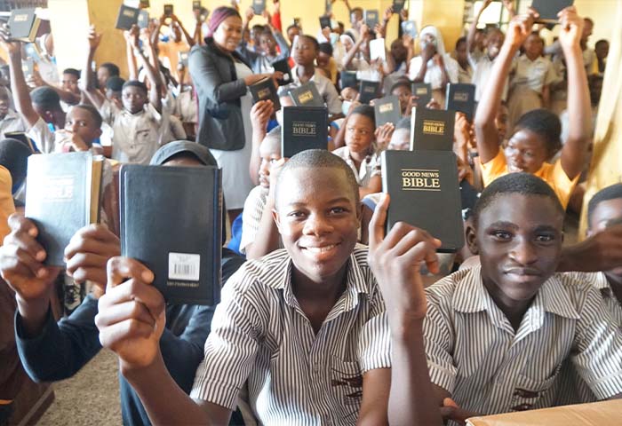 가나의 미션스쿨에서 성경을 받기 원하는 사람을 물어보면 모든 학생들이 손을 번쩍 듭니다. 그리고 성경을 받은 청소년들은 성경을 분실하지 않도록 성경 표지에 자신의 이름을 적기 시작합니다. 가나는 최근 무슬림 인구가 증가하여 이슬람교 비율이 18%를 넘어섰습니다. 미션스쿨에는 무슬림 가정의 학생들도 다니고 있습니다. 그들이 성경을 받기 희망하면 학교에서 성경을 선물하고, 이를 통해 무슬림 학생들도 성경으로 복음을 접할 기회를 얻습니다.