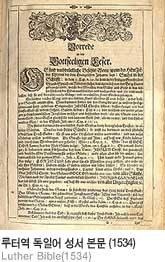 독일에서 성서 번역의 신기원을 이룬 것은 마르틴 루터(Martin Luther)의 독일어역 성서이다. 1522년에 빗텐베르크(Wittenberg)에서 신약전서가 나왔다.