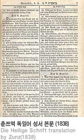 를 독일어로 번역하고 독일어 활자로 인쇄한 최초 번역은 곳트홀트 살로몬(Gotthold Salomon)의 번역이다(Altona, 1837). 마르틴부버(Martin Buber)와 프란츠 로젠바이크(Franz Rosenweig)가