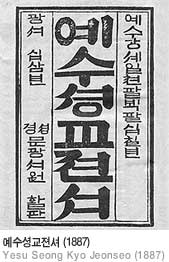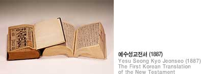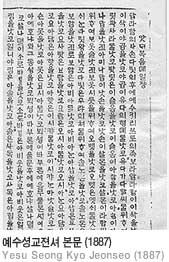 1887년에는 우리말로 번역된 최초의 완역 신약 「예수셩교젼셔」가 나온다.
