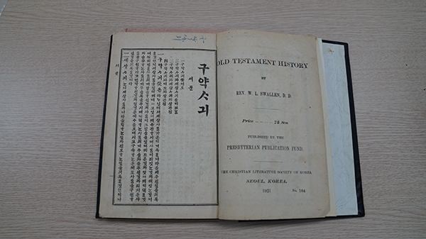 『구약ᄉᆞ긔』는 평양 장로회신학교의 소안론(蘇安論, William L. Swallen, 1865-1954) 선교사가 1910년 집필한 교과서를 1921년 조선예수교장로회와 조선야소교서회(조선예수교서회)에서 발행한 판본입니다. 소안론 선교사는 1892년 미국북장로회 파송 선교사로 내한하여 평양신학교에서 “구약사기”를 가르쳤습니다.