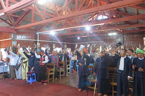 봉헌식이 열린 로웨이 카웅 교회는 100여 년 전 샨주 시장에서 우연히 복음을 듣고 기독교인이 된 첫 파오 기독교인 4명이 세운 최초의 파오 부족 교회입니다. 처음에는 마을 사람들이 모두 불교신자여서 비밀리에 예배를 드리고 다른 부족에게 찾아가 세례를 받았습니다. 이렇게 믿음을 지킨 사람들이 나무를 베어 직접 지은 교회에서 뜻깊은 봉헌식이 열렸습니다. 봉헌식에는 1천 명 이상이 참석해 교회 내부는 물론 교회 마당까지 사람들로 가득했습니다. 지역 기독교 지도자들을 포함한 많은 파오 부족 사람들이 성경 봉헌의 기쁨을 함께 나누었습니다.