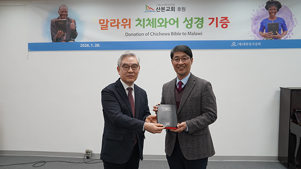2026년 1월 28일, 본 공회(이사장 이선균 목사)에서는 산본교회(김성태 목사)의 후원으로 말라위에 <치체와어 성경> 1,000부를 보내는 기증 예식을 가졌습니다. 산본교회는 이웃을 위한 나눔 사역의 일환인 “등불 사역”을 통해 말라위에 성경을 보내기 위한 기금 모금을 하여 온 성도의 마음을 모아 본 공회에 헌금을 전달해 왔습니다.