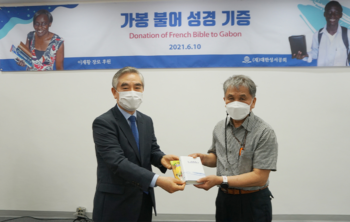 2021년 6월 10일, 이재황 장로의 후원으로 가봉에 <불어 성경> 3,590부를 보내는 기증식을 가졌습니다. 이번 기증식에서 이재황 장로는 인사말을 통해 “가봉의 모든 생활 터전이 하나님 말씀 속에서 다시 깨어나서 하나님께 영광 돌리는 나라가 되고, 믿는 민족으로서 긍지를 가지고 온 세상에 하나님의 말씀을 나누는 나라가 되기를 간절히 기도드립니다.”라고 기대를 전했습니다.